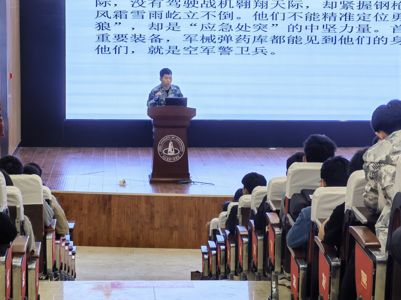 最后,赵成刚老师作动员大会讲话,他希望广大青年大学生要关心支持国防建设,做新时代忠诚爱国者;切实提高大局意识,充分认识大学生在国防事业中的重要作用;把握机遇,积极响应国家号召,自觉履行兵役义务,奔赴军营锻炼成才。