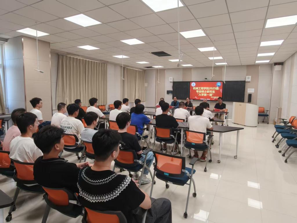王占英首先代表学院对全体新生的到来表示热烈欢迎和祝贺。他以“传承匠心,科创报国”为主题,为同学们讲授了内涵深刻、意义深远的“入学第一课”。他深入浅出地阐述了机械工程学科在国家现代化建设与科技创新体系中的重要作用与历史使命,勉励新生要立大志、明大德、成大才、担大任,尽快完成从本科生到研究生的角色转变,珍惜宝贵的学术时光。