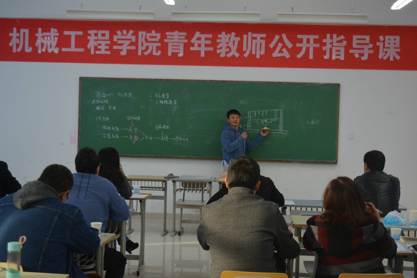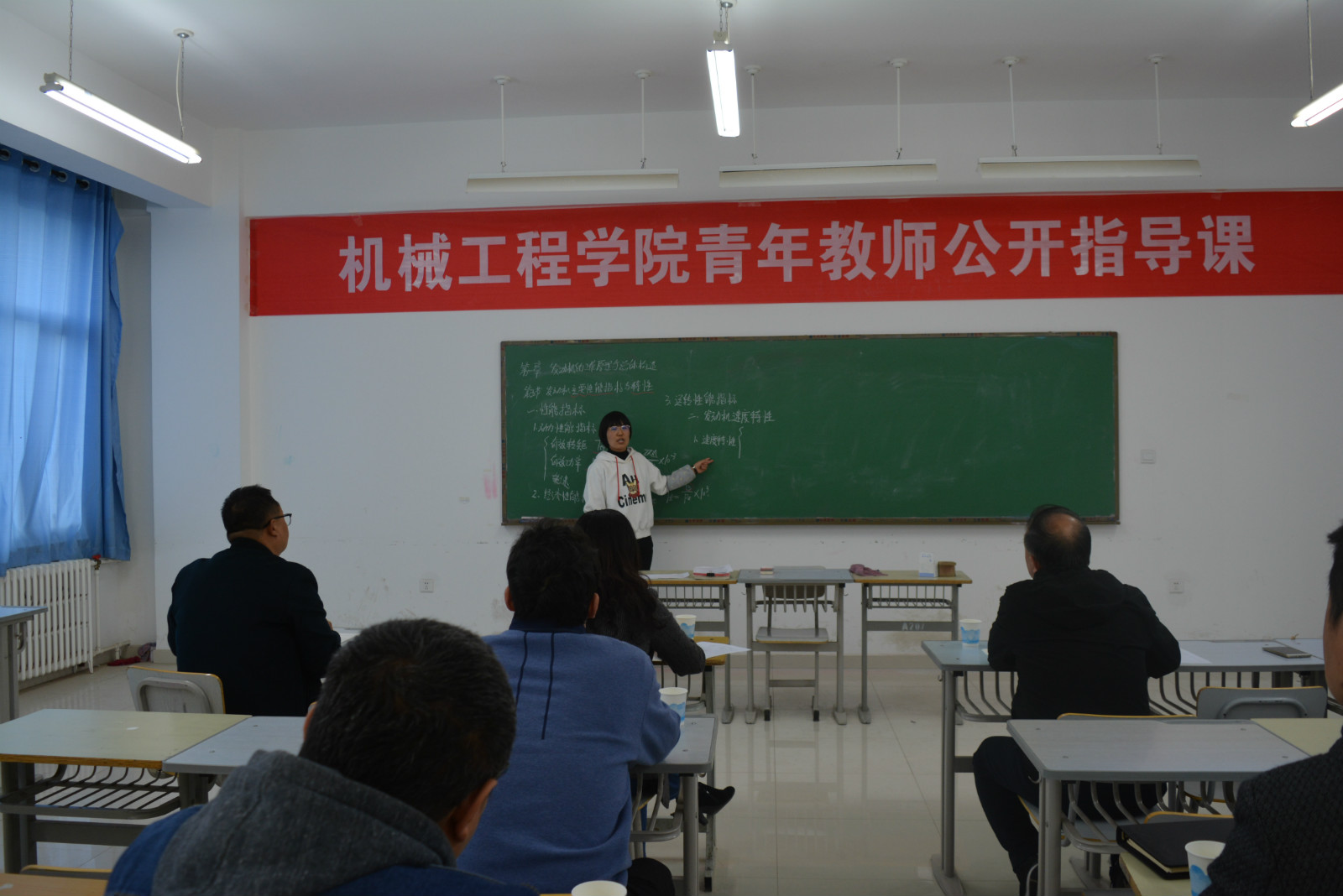 2018-2019学年新入职的6位青年教师王久强、王振兴、杨亚楠、任志国、刘向辉和郑永杰依次进行了板书讲课。讲课结束后,各位评委分别围绕教学方法、教学设计、课堂组织、教学效果等方面一一进行了现场点评,并提出了针对性极强的改进意见和建议。