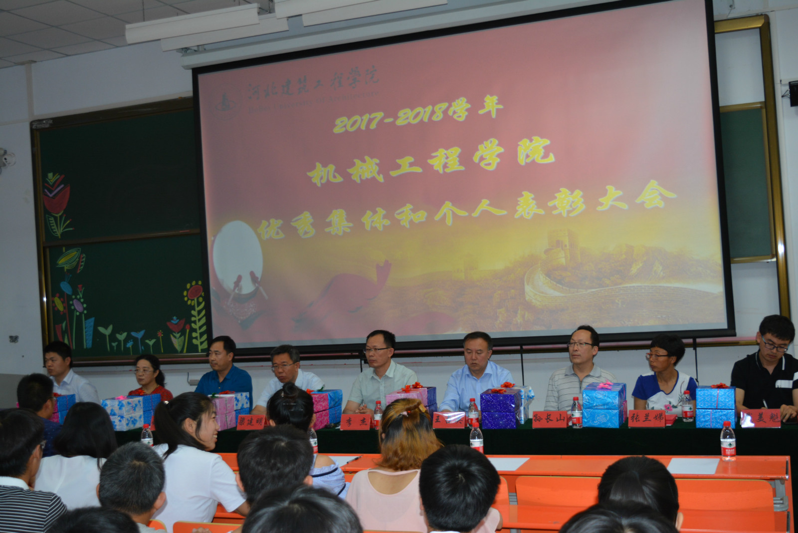2018年5月30日下午,开云手机站登录入口全体领导老师和优秀学生代表在主教102隆重举行了开云手机站登录入口2017-2018学年总结表彰大会。参加大会的主要领导老师有开云手机站登录入口院长梁建明、党委书记李杰、副院长王占英、副院长兼副书记刘春东、工程训练中心主任孙长山、设备安装教研室主任朱春华、机电教研室主任张兰娣、车辆教研室主任张灿果、实验中心主任戴美魁,会议由学工办主任赵成刚主持。在庄严的国歌声中,大会正式拉开了帷幕。
